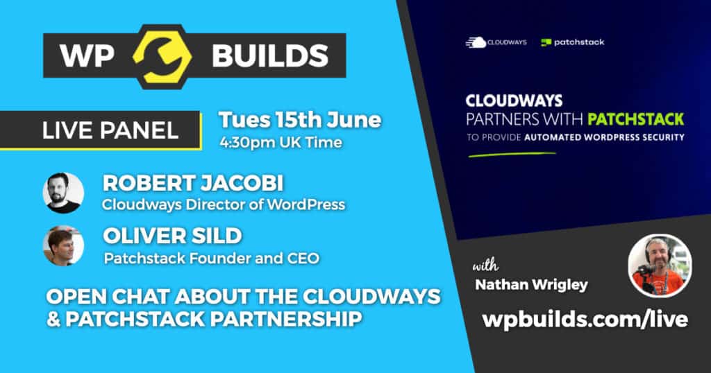 Just a reminder that I’m going live soon with Robert Jacobi (Cloudways) and Oliver Sild (Patchstack – formerly WebARX).
